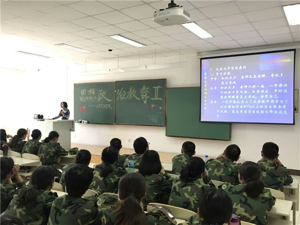 2017级新生们在经历了一周的刻苦训练之后,每个人都得到了锻炼与提高。9月6日上午,新生们在中心校区李四光教学楼204教室,认真聆听了XDXX