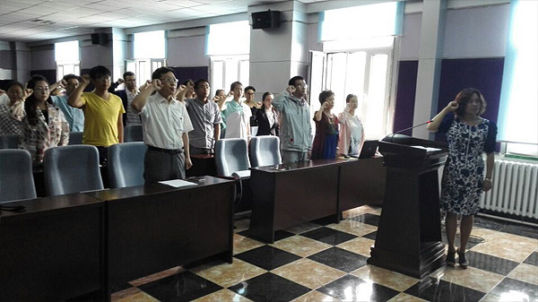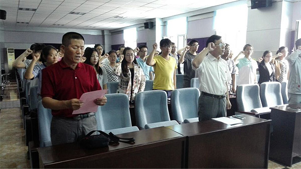 为了弘扬和传承中国共产党的精神,为党组织增添新鲜血液,2015年7月1日XDXX 举行了庆祝建党94周年暨预备党员入党仪式。XDXX 党委书记钟绍峰、副书记兼副院长刘丽、学生工作办公室主任吴晓辉,团委书记苏国范、党务秘书曲超、院工会主席胡志宏老师以及41名新党员参加了此次大会。会议由副书记兼副院长刘丽主持。 入党宣誓仪式在庄严的《国际歌》中拉开帷幕。首先由副书记兼副院长刘丽宣读41位入党同学名单并对他们表示祝贺。随后,在老党员胡老师的带领下,41名预备党员举起右拳,面对鲜红的党旗齐声宣读入党誓词,向党组织做出了庄严宣誓。12级董雪洁同学代表新党员进行了发言。她发达了此时激动的心情,并感谢党组织与老党员的热切关怀,表明要认真学习党章,积极向党组织靠拢,充分发挥党员的模范作用,努力成为合格的中国特色社会主义事业的建设者和接班人。最后,党委书记钟绍峰发表讲话,指出入党宣誓仪式是加入党组织的重要环节,也是对新老党员一次深刻的党性教育,同时也是对建党94周年的纪念。鼓励党员特别是新党员要回顾历史,学习东北抗联精神,并提出坚定信念、牢记宗旨;遵守纪律、树立形象;加强学习、增强本领这三点想法,同时表达了对新党员的希望,最后,赢来了同学们阵阵掌声。 此次宣誓仪式,旨在培养优秀的党员,为党组织带来更有活力的新因子,为XDXX 学生树立榜样,让更多的青年学生积极向党组织靠拢,在党的带领下不断前进,为我们国家建设做出贡献。