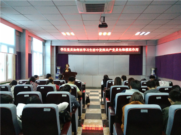 三楼报告厅开展了以“学生党员如何在学校生活中发挥共产党员先锋模范作用”为主题的党课学习。主讲人为XDXX
