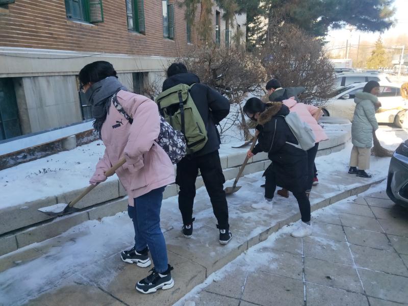 会后,冷老师带领同学们展开了“清扫积雪,劳动光荣”社会实践活动,在劳动中体会“不忘初心,牢记使命”的深刻含义。同学们分工明确、干劲十足,短时间内,积雪便消失得无影无踪,场地也焕然一新。同学们纷纷表示本次实践活动既充实有趣,又使他们对“不忘初心,牢记使命”的内在意义有了更加深刻的理解。
