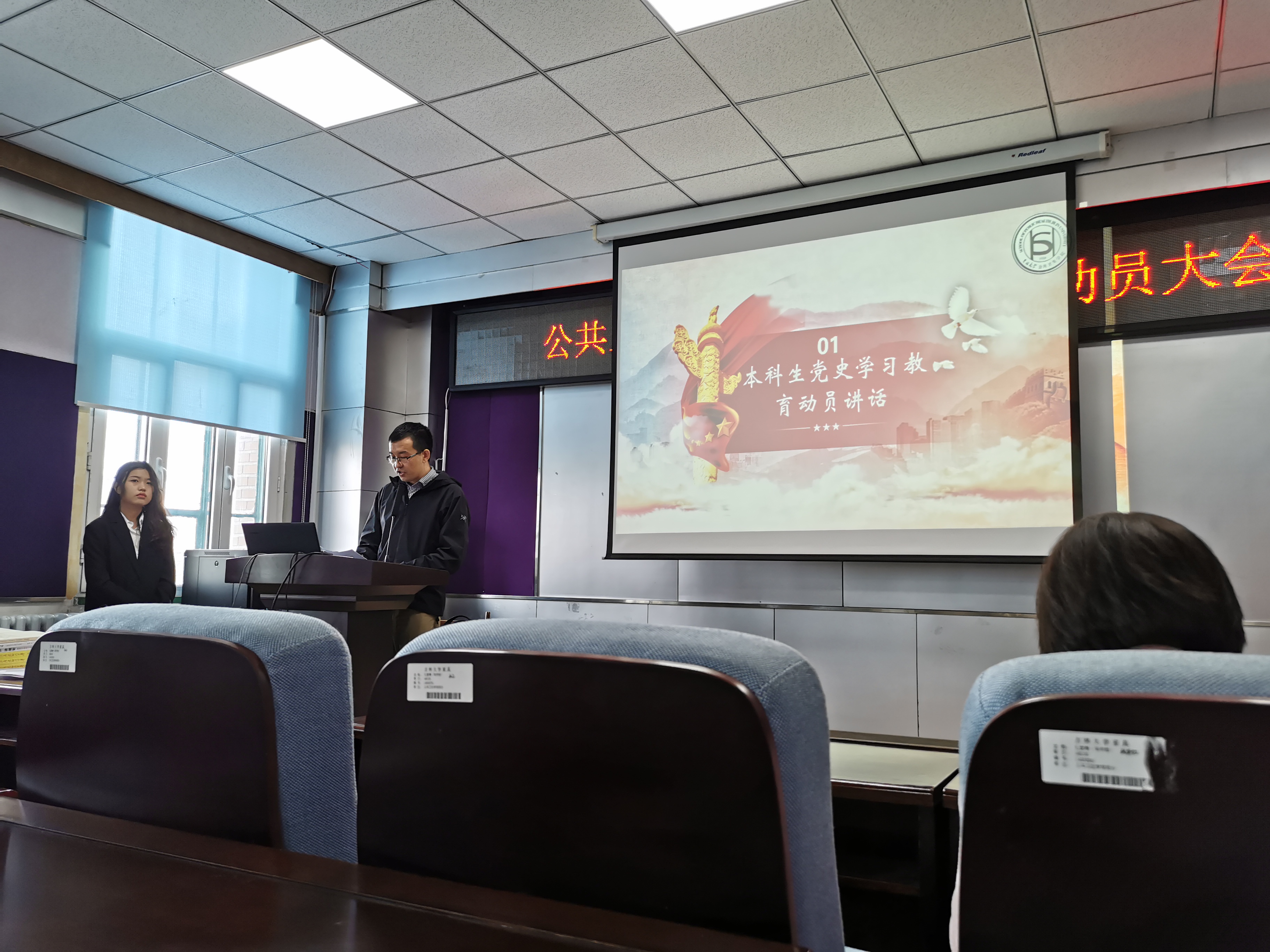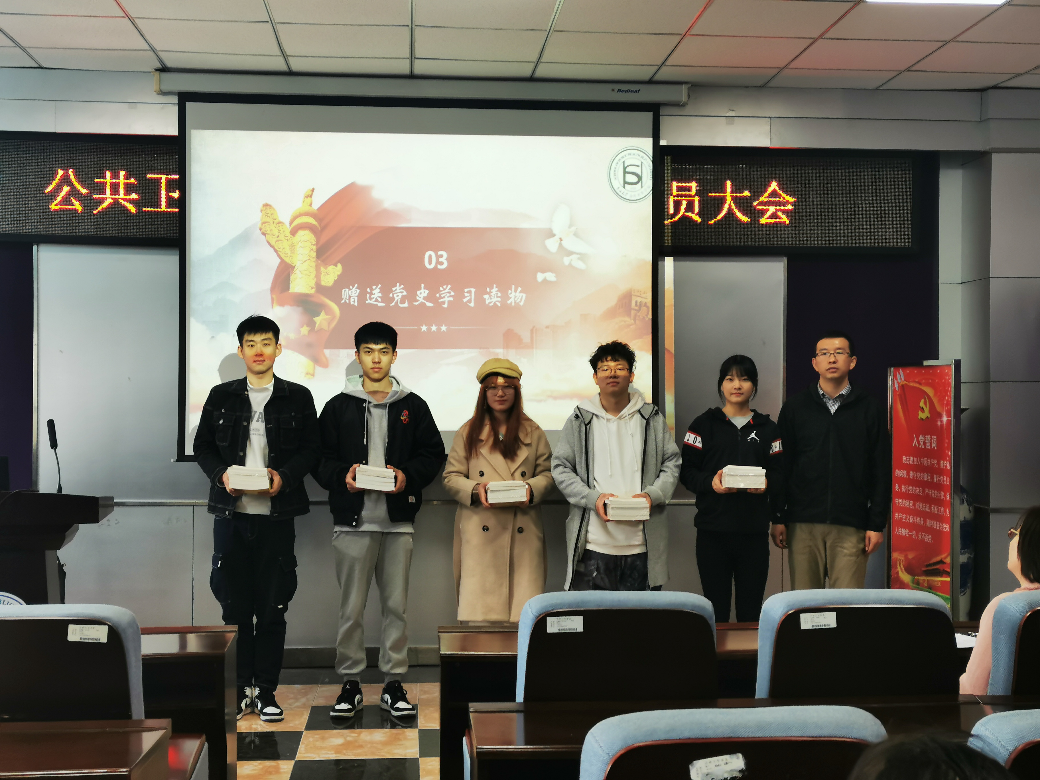 首先,苏国范老师进行了本科生党史学习教育动员讲话。苏老师谈到,在中国共产党建党100周年到来之际,中共党员尤其是青年党员要担负起时代重任,为实现党的百年目标努力奋斗。要落实好党中央要求,推动党史学习教育取得扎实成效,深刻认识学习党史的重要性,更好地从党的百年征程中汲取前进的智慧和奋进的力量。随后,冷贺璇老师就学院即将开展的本科生党史学习教育系列活动方案进行了详细的介绍,希望在扎实做好日常理论学习的同时,通过丰富多彩、青年们喜闻乐见的活动形式让党史学习教育“动起来、活起来、热起来、亮起来”,带领青年党员身临其境学党史,在学思践悟中坚定理想信念,在奋发有为中践行初心使命。利用学院微信公众平台,开辟“百年党史青年说”“百年党史周周测”等专栏,选聘学生“党史宣讲员”,同时线下组织开展理论学习,通过微党课大赛、红歌会、志愿服务、走访红色基地等活动创新教育形式。接下来,苏国范老师向本科生党支部代表赠送党史学习读物。冷贺璇老师和刘心怡老师向“党史宣讲员”代表颁发聘书。最后,本科生党员代表黄羽薇同学进行了发言。