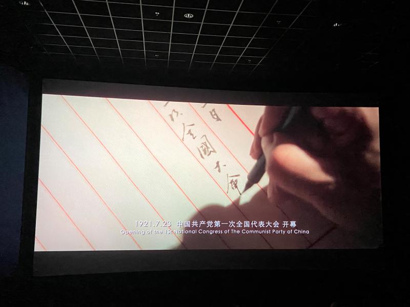 电影中,1921年的上海,租界林立,各方势力错综复杂,局势剑拔弩张。13位来自五湖四海,平均年龄仅28岁的热血青年,从民族危亡的困境出发,将青春理想化作救国救民、寻求真理的信念,突破国际各股复杂势力的监控和追踪,在上海共聚,在陈独秀、李大钊的领导和推进下,1921年7月23日,中国共产党第一次全国代表大会在上海召开,宣告这个改变了亿万国民前途命运的政党正式成立。自此,中国历史进入了新篇章。电影结束后,广大师生党员均为先驱们坚持真理、坚守理想,践行初心、担当使命,不怕牺牲、英勇斗争,对党忠诚、不负人民的伟大建党精神所动容、震撼。