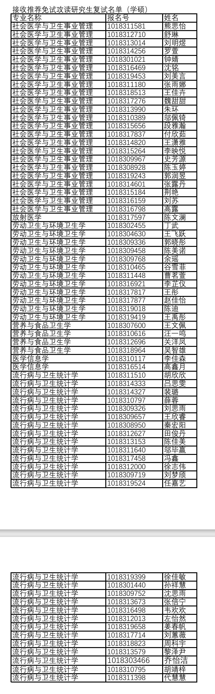 按照《XDXX 2026年接收推荐免试攻读研究生复试、录取工作办法》,学院各学术学位授权点分别组织学科内导师组成工作小组,对申请考生的资料进行审核,综合考虑本科专业、学业成绩、外语成绩等因素进行了筛选。现对学术学位研究生进入接收推荐免试攻读硕士研究生复试阶段的名单公布如下,请各位考生关注相关通知,准时参加复试。