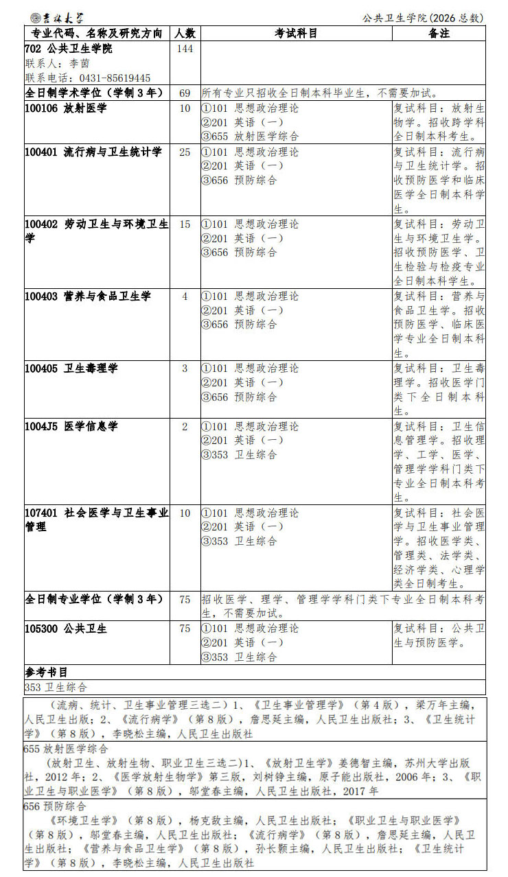 4.考生特别关注:①2026年医学信息学、社会医学与卫生事业管理两个专业的专业课考试科目为353卫生综合。②公共卫生(专业学位)招收医学、理学、管理学学科门类下专业全日制本科考生,不需要加试。