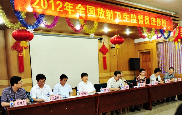 在南湖校区南湖会馆隆重举行了2012年第一期全国放射卫生监督员进修班开学典礼。出席此次典礼的有卫生部监督局王雪凝专员(正局级)、吉林省卫生厅郭庆河巡视员(正厅级)、中国疾病预防控制中心辐射防护与核安全所苏旭所长、卫生部卫生局放射卫生处邢路微处长、吉林省卫生厅监督处郭齐祥处长、吉林省卫生监督所冮森林所长、XDXX