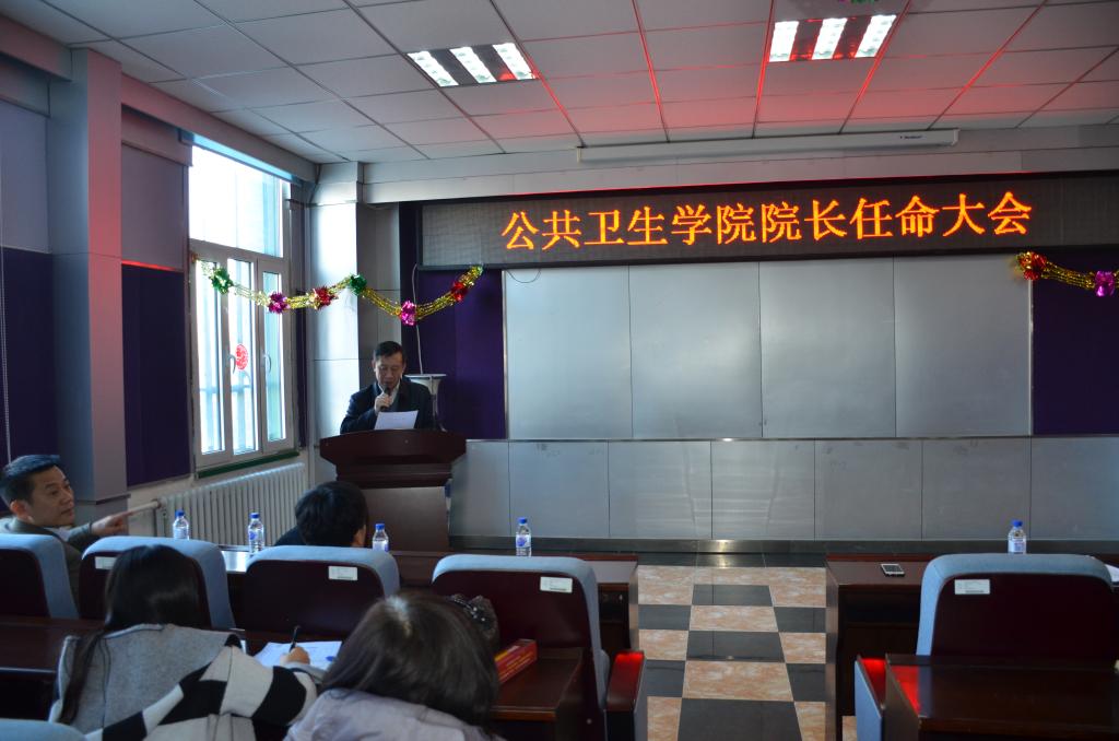 在三楼报告厅召开院长任命大会,校党委副书记兼纪委书记李忠军教授,党委组织部边铁部长,学院全体教职工参加了会议,会议由院党委书记赵国利主持。