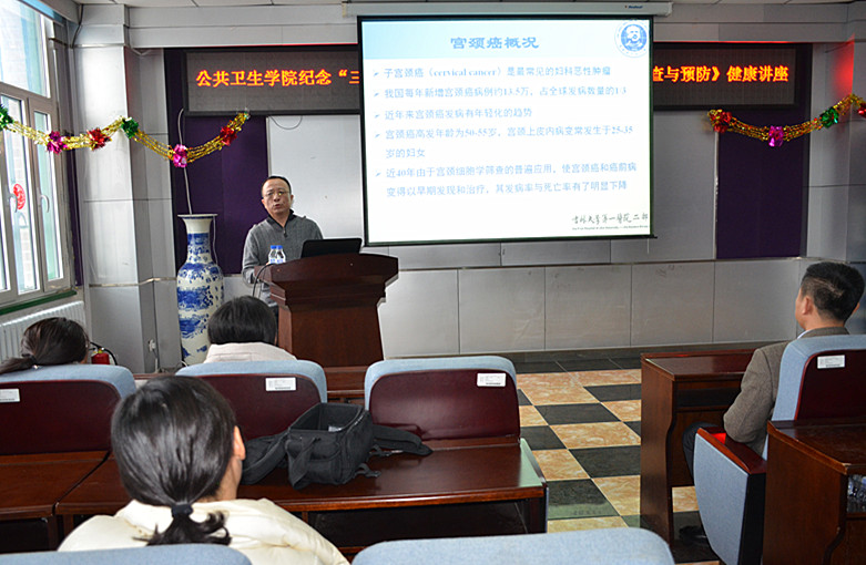 第一医院妇产科主任、吉林省妇产科疑难病诊断专家温岩教授,为大家讲授了题目为《宫颈癌的筛查与防治》的相关内容。学院的许多女老师和女学生都参加了讲座。