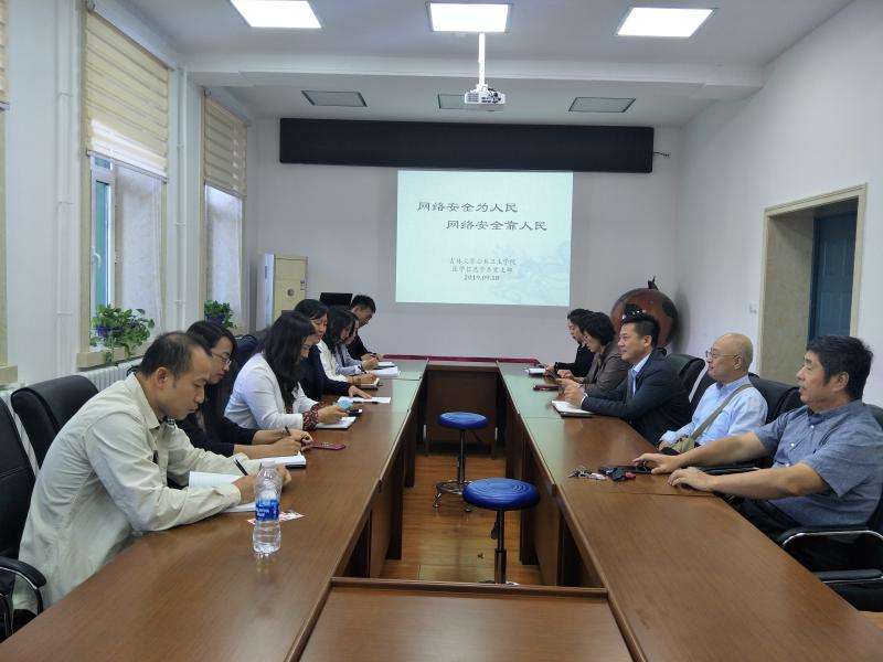 为深入贯彻落实习近平总书记关于网络强国的重要思想,按照学校工作部署要求 2019年9月18日下午,公共卫生学医药信息学系教工党支部在学院二楼会议室组织开展了网络安全教育宣讲活动支部全体党员参加,学院党委书记赵国利主任曲超参加了本次活动。