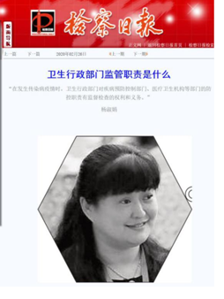 疫情就是命令,防控就是责任。学院医事法学教研室全体教师在系主任、中国卫生法学会副会长杨淑娟教授带领下,响应号召,积极行动起来。杨淑娟教授和于娟副教授率先在《检察日报》上发表了《卫生行政部门监督检查的职责与履行要求》和《如何开展传染病预防》专题文章,在疫情防控的关键时刻,向全校师生和社会公众提供权威的传染病防治知识,解读疫情防控的法律措施。同时,教研室老师们围绕当前社会公众普遍关心的卫生行政部门职责、传染病防护、疫情防控中的医护人员保护等动态热点问题,以交叉学科特有的专业视角,全方位、多角度,精准发力,在学院主页、微信公众号、传统报刊等媒体,进行疫情防控法治应急科普系列推送,取得了良好的社会效果。体现了公卫法律人在疫情面前的担当。