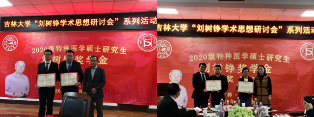 大会首先进行了刘树铮基金研究生奖学金的颁奖仪式,刘意教授宣读了2020级特种医学硕士研究生“刘树铮研究生奖学金”获奖名单,赵国利书记为一等奖学金获得者颁发了获奖证书;苏旭教授及赵勇教授为二等奖学金获得者颁发了获奖证书;金光辉教授为三等奖学金获得者颁发了获奖证书;姜新教授和金顺子教授为优秀奖获得者颁发了获奖证书。王铭蔚作为获奖研究生代表表示珍惜这份荣誉,在未来的学习和生活中发扬刘树铮老前辈刻苦钻研、严谨求实、坚持不懈的精神,积极向上,严格律己。刘雅文院长、XDXX