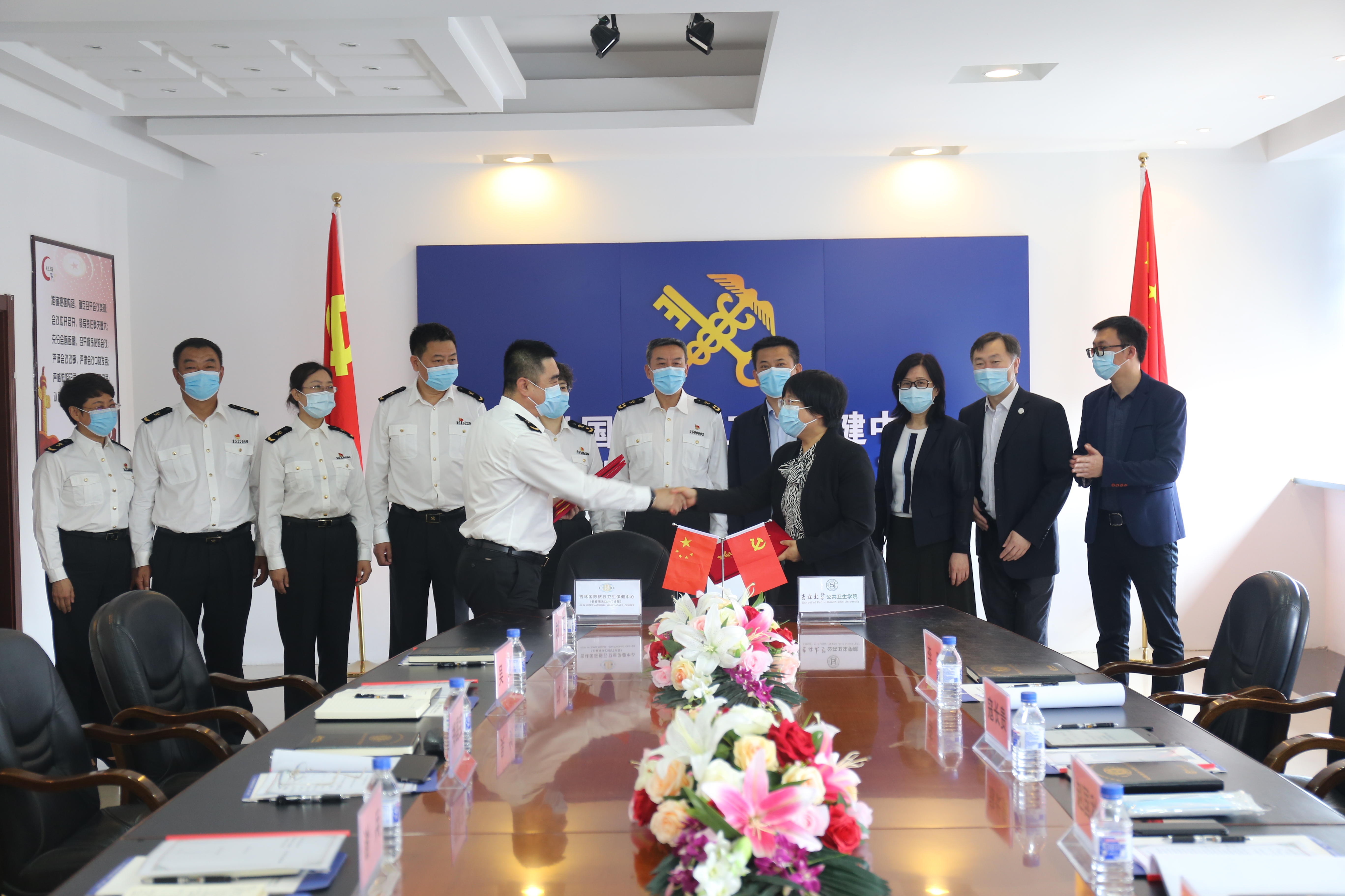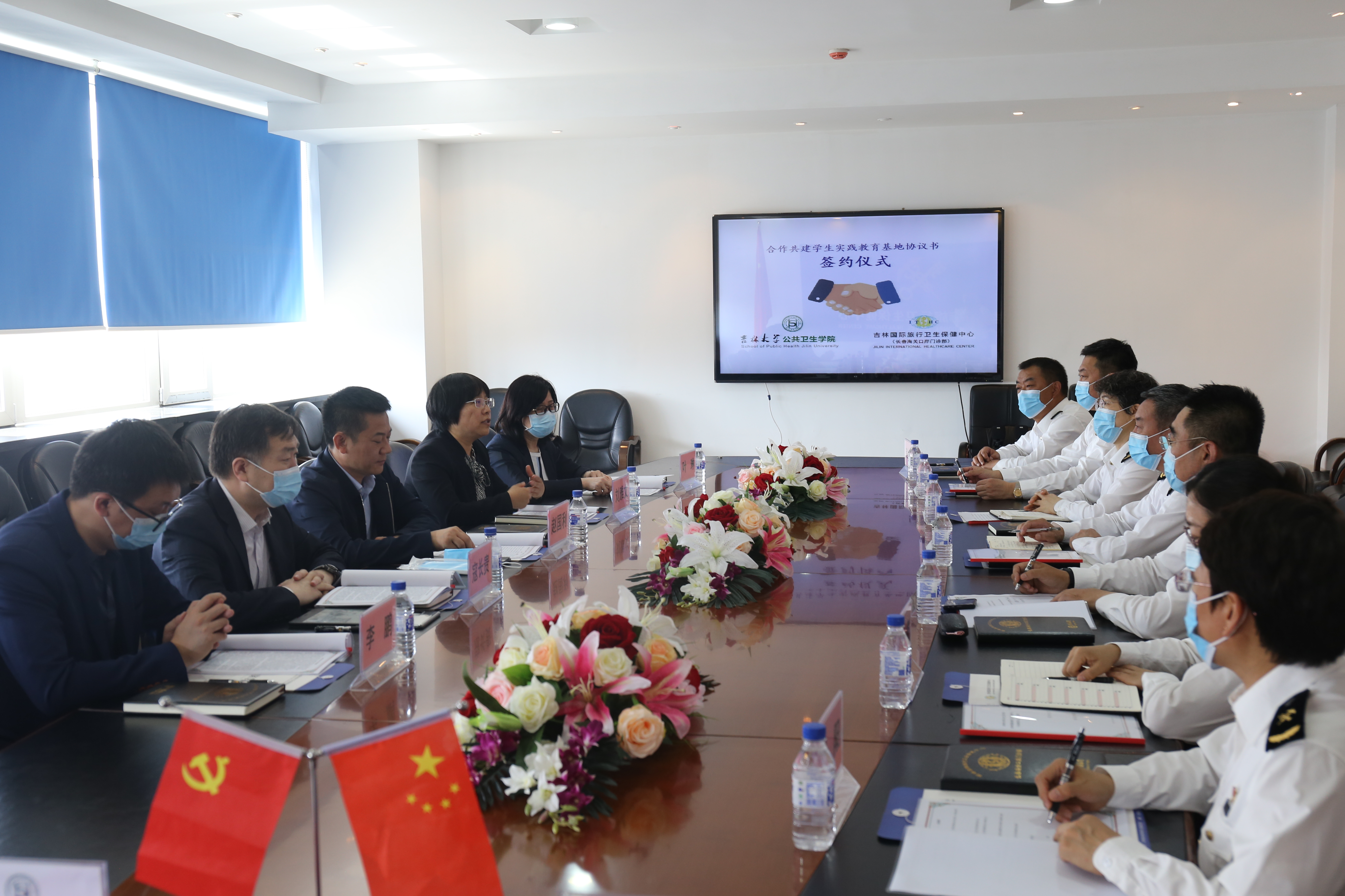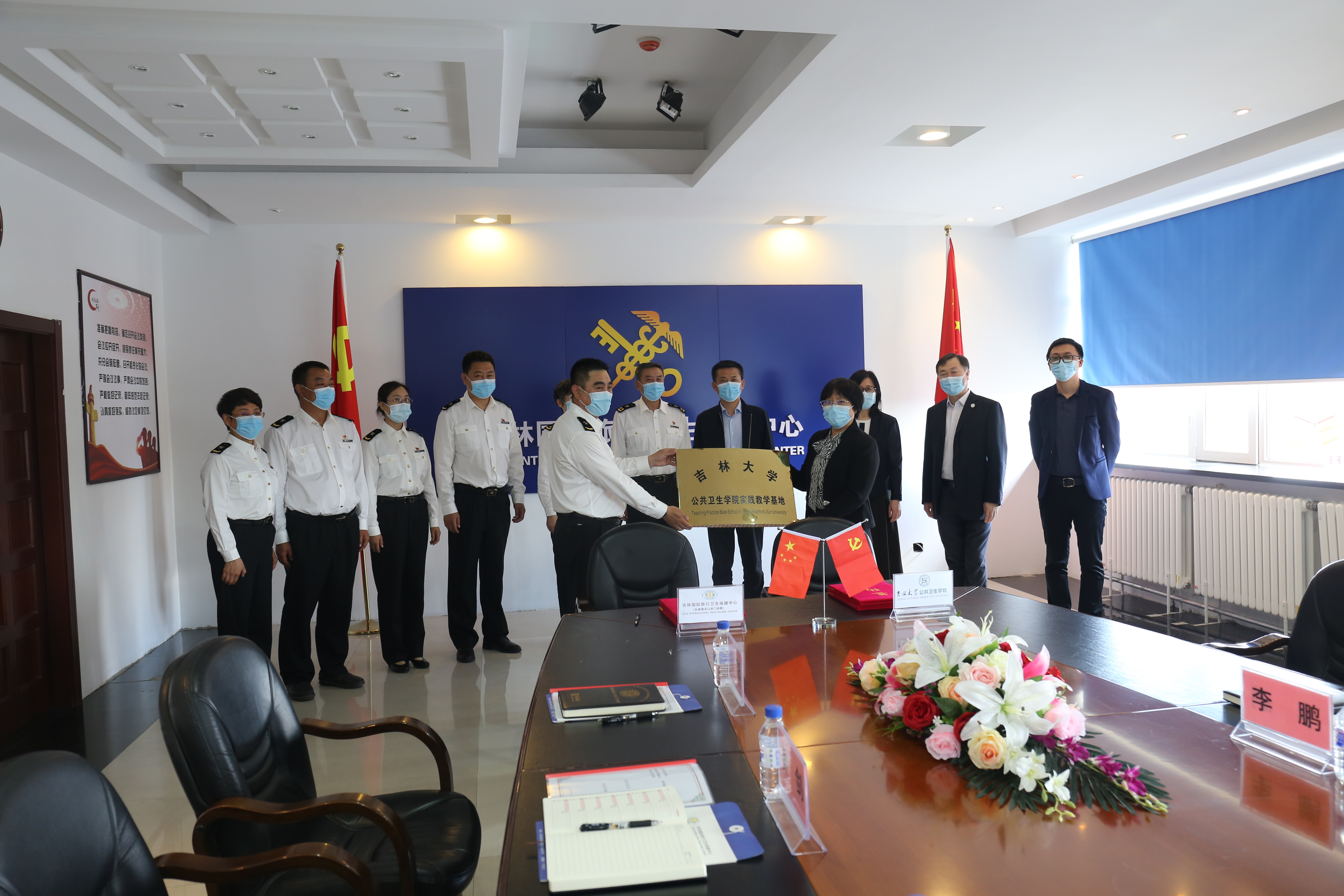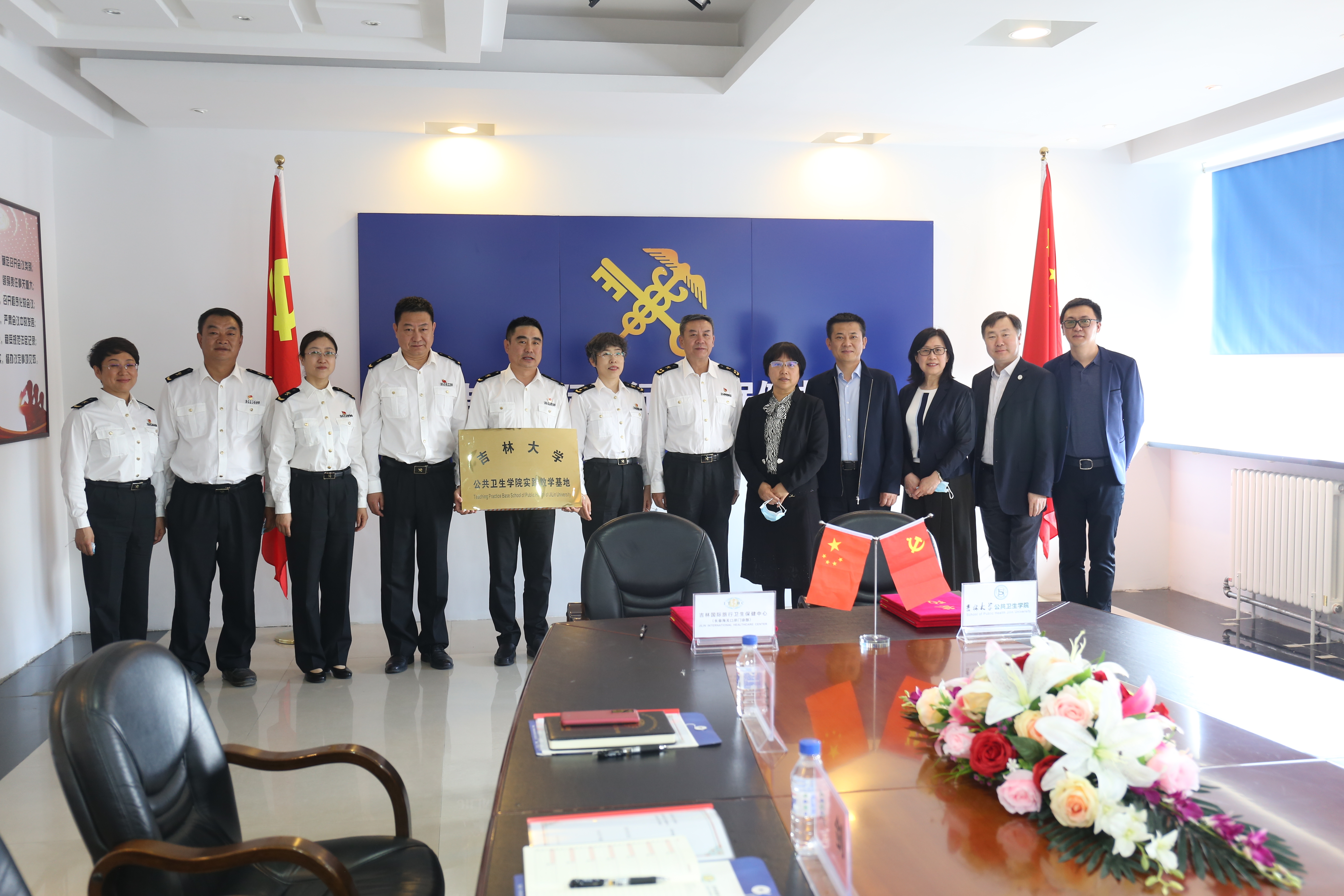 与吉林国际旅行卫生保健中心(长春海关口岸门诊部)隆重举行本科实践教学基地挂牌仪式。出席本次仪式的有长春海关副关长谢兵、长春海关卫检处处长邵丽筠、吉林国际旅行卫生保健中心主任郑昌保、保健中心副主任刘琦、保健中心副主任吴剑、保健中心副主任赵大力、保健中心纪委书记刘阳;XDXX