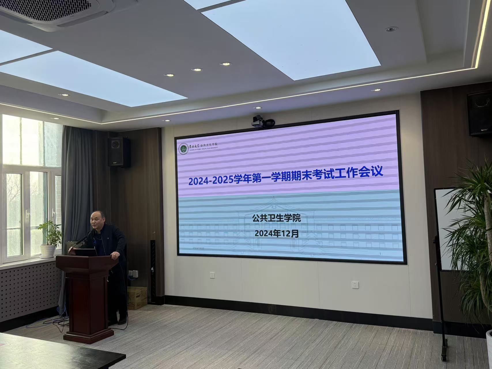 在三楼多功能报告厅召开2024—2025学年第一学期期末考试工作会议。学院各系、教研室、实验教学中心全体教师及监考人员参会。会议由教学副院长王志成主持。
