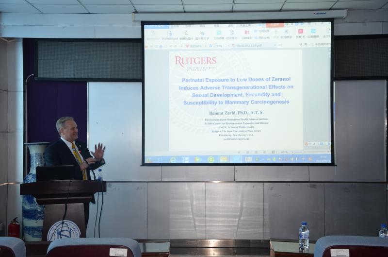分别作了题目为“Sex Education: Policy, Practice,and Implications for Adolecent Health”和“Perinatal Exposure to Low-Doses Zeranol Induces Adverse Transgenerational Effects on Sexual Development, Fecundity and Susceptibility to Mammary Carcinogenesis”的学术讲座。Kantor教授的报告集中阐述了开展性教育对于青少年健康的重要性以及世界各国实施性教育的现状。Zarbl教授的报告集中阐述了有关Zeranol的最新研究、Zeranol与DES的对比以及围产期接触低剂量的Zeranol对产妇及新生儿造成的影响。两位教授演讲内容丰富、幽默风趣,与现场师生的频繁互动。部分师生就自己感兴趣的问题与二位教授进行了热烈的探讨和交流。XDXX