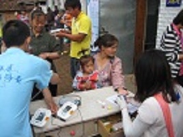 暑期“三下乡”农民健康体检实践小组一行24人来到榆树市,在之后的四天里要在榆树市保寿镇黑林子村和闵家镇卫生院为农民进行健康体检。由于榆树健康体检人数较多,工作量比较大,要求待检农民早餐空腹,所以要求工作人员提前到场,指导老师和同学们都五点左右就起床,然后再车上把早餐解决,如果遇到道路特别远的起床还会更早。在这四天里,天气变幻莫测,刮风下雨阴晴不定,特别是黑林子村的条件比较艰苦,给活动带来了很大的困难,但是所有的队员没有一个说苦喊累的,都认真的完成自己的任务,咬牙坚持过来。在榆树“三下乡”的几天里,志愿者们为村民们量血压、血糖、体测,协助老师和医生采血、做心电,向他们讲述有关健康的知识;遇到血压、血糖不正常的村民,及时向他们普及健康知识,并告诉他们如何注意饮食和生活习惯,预防高血压和糖尿病的发生。
