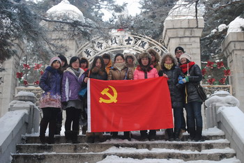 “红色之旅”团队首先走访了吉林市革命烈士陵园。同学们冒着零下近30度的严寒,来到革命烈士纪念塔前,向长眠于此、为祖国献出宝贵生命的烈士们献上最崇高的敬意。随后几天,同学们又分别来到了吉林国电热电厂、吉林石化合成树脂厂等具有吉林发展特色的重工企业。在那里,同学们深刻体会到了吉林市的快速发展,并为自己是吉林人,中国人感到无比自豪。