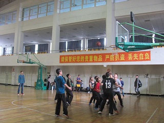 随着裁判的一声哨响,比赛正式开始。场上球员身手敏捷,场上赛点不断:急停投篮、转身上篮、完美三分,充分展示了球员的高超球技并赢得了场外观众的阵阵喝彩。上半场结束后,12级代表队在稍微落后的情况下放弃中场休息,一直进行投篮等技巧练习。在下半场,11级代表队愈战愈勇,默契传球配合完美;12级代表队也不甘示弱奋起直追,回防、抢断、进攻、投篮上篮一气呵成。同时在比赛过程中也涌现出了很多展现拼搏、团结、不服输等体育精神的细节,如有的同学带伤上阵依然全力以赴,有的同学在跑动过程中眼镜多次跌落也毫不在意,双方球员在无意碰撞后相互询问和关心,场外观众也受到场内球员的激昂状态的感染,沉浸到竞技的魅力之中。最后,11级放射医学代表队以73:54的优势获胜。