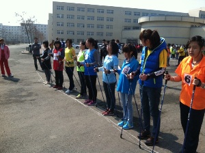 比赛以学院为单位进行接力赛,分为两大组,每组六个学院。比赛开始前,由比赛工作人员宣读比赛规则,并组织各学院领取比赛时使用的手杖;接着,比赛正式开始:比赛选手就位后,各个严肃认真蓄势待发,只听一声枪响,选手们争相努力竞走,各学院的啦啦队也气势高涨,鼓足劲为自己学院加油。现场气氛热烈浓厚。XDXX
