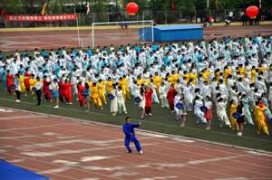太极拳代表队整齐入场,迅速展开队形开始表演。