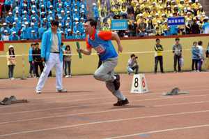 的第一名选手大跨步迈出,健步如飞,与第二名选手的交接棒也可堪称完美。随后,一次一次的接棒,选手们争分夺秒,奋力奔跑,竭力为下一棒的选手赢得更大的优势。在同学们的呐喊声中,紧张刺激的比赛在最后一名选手冲过终点的时候结束了。经过几位老师和同学默契的配合,XDXX
