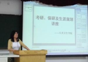 各学科专业的基本情况和学院的人才培养思路,并重点介绍了预防医学各专业及专业方向的情况。刘晓冬教授从放射医学专业的发展历史、研究生招收情况、培养目标以及毕业生去向等方面进行了详细的介绍。王伟教授为同学们讲述了医药信息与管理方面的情况,并让教研室各位优秀的老师与同学们进行面对面交流。杨淑娟教授则从社会医学系和医事法学系两个方面为同学们介绍了学科发展及招收的情况。