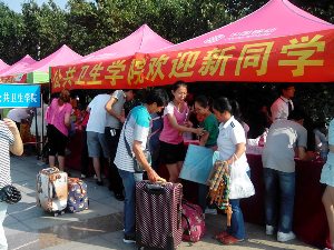 院学生会的同学们怀着满腔热情,搬运用具、搭好帐篷、摆好桌椅、布设展板、分发资料,开始了正式的迎新活动。当新生们陆续来到,公共卫生的同学们就抖擞精神、笑容满面、耐心细心地为新生们讲解各项入学事宜。领取新生档案、注册信息、发放银行卡、领取电话卡、新生体检及缴纳学费等流程依次有序展开,有条不紊。还有一些自愿加入到迎新工作的大三大四的学长学姐们,他们在一旁以亲和的态度和幽默的说话方式使新生迅速感受到了XDXX