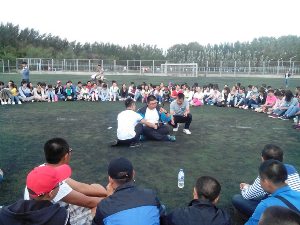 于中心校区足球场为2014级新生们举办了庆中秋活动。