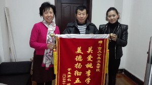 老师心系学生,家长感恩回馈。11月28日上午十点四十分,冷艳梅同学的父亲满怀感激之情将写着“关爱桃李学子,美德扬彻五洲”的锦旗送到XDXX