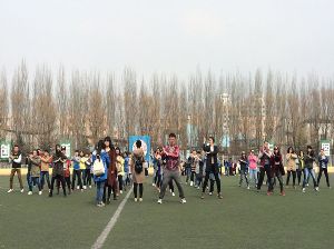 下午一点,同学们早早地来到了体育场,自觉站好队伍。学生会文艺部的成员们分工明确,迅速组织同学们投入到训练中。本次排练的主要目的是寻找排练时出现的问题,弥补缺陷;教授新动作,变换新队形,使舞蹈达到最佳效果。一遍又一遍的训练,虽然繁琐枯燥,但是同学们没有丝毫抱怨,每个同学都以高度的热情进行训练。通过这么多天的排练,同学之间已建立起了默契,动作规范,队形整齐;文艺部的成员也精益求精,对个别同学的动作耐心纠正。