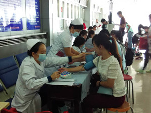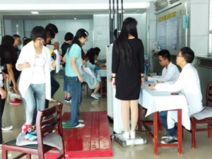 新生报到后,由学生会工作人员带领并由医院志愿者帮助医生们进行新生的体检工作。每天上午八点半至下午五点半于学校门诊部检查胸部透视。 志愿者们引导新生进行各项体检项目的检查,分别有身高、体重、采血、内科、外科。XDXX