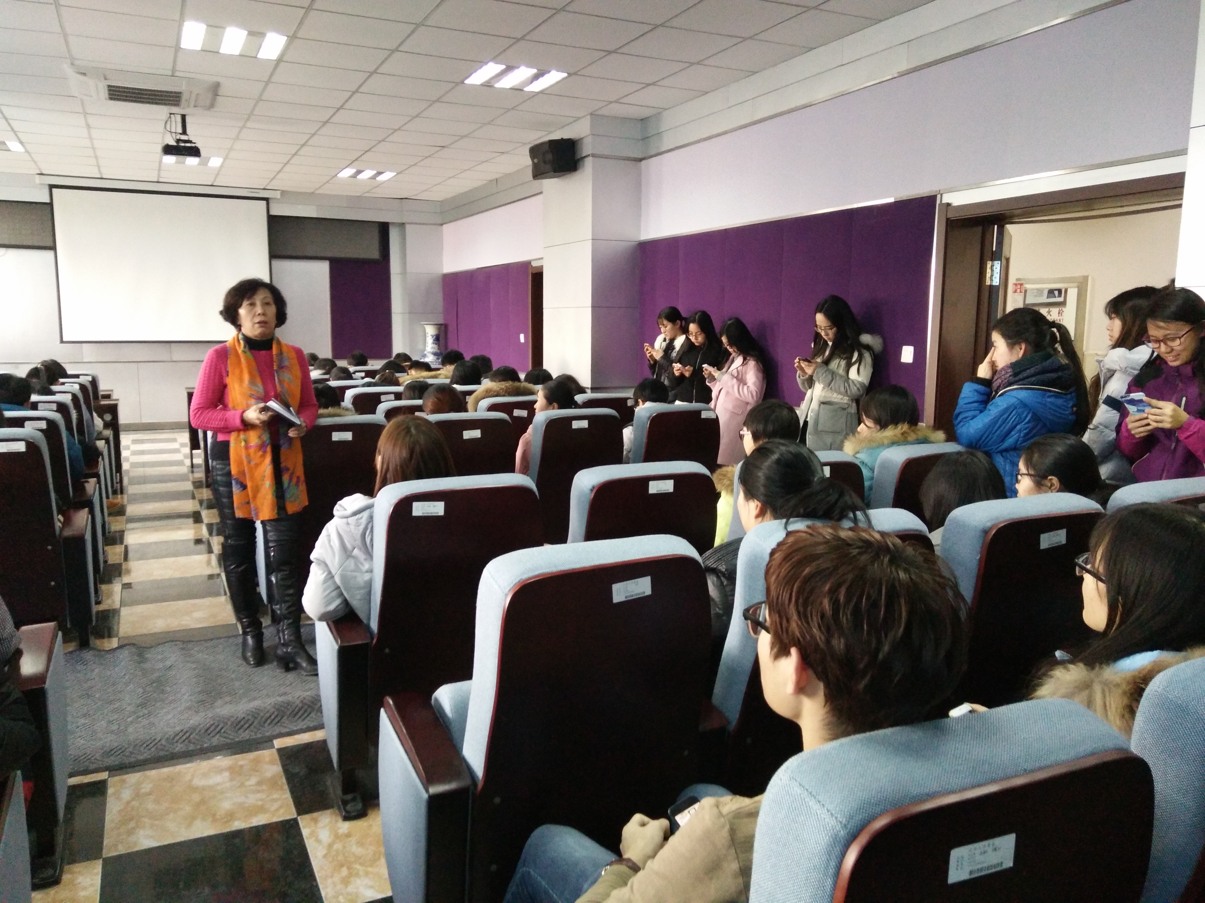 会上,2013级辅导员吴晓辉从寝室安全、校园借贷、考试诚信和榜样力量四个方面展开了详细的讲述。首先,她对2013级学生本学期的学习、生活情况作了简单总结和肯定,鼓励同学们在以后的学习、生活中再接再厉。随后,吴晓辉指出,她提倡通过每天早晨起床汇报寝室人数的方法来关注每一个学生的人身安全和心理健康。同时,她还以“XDXX