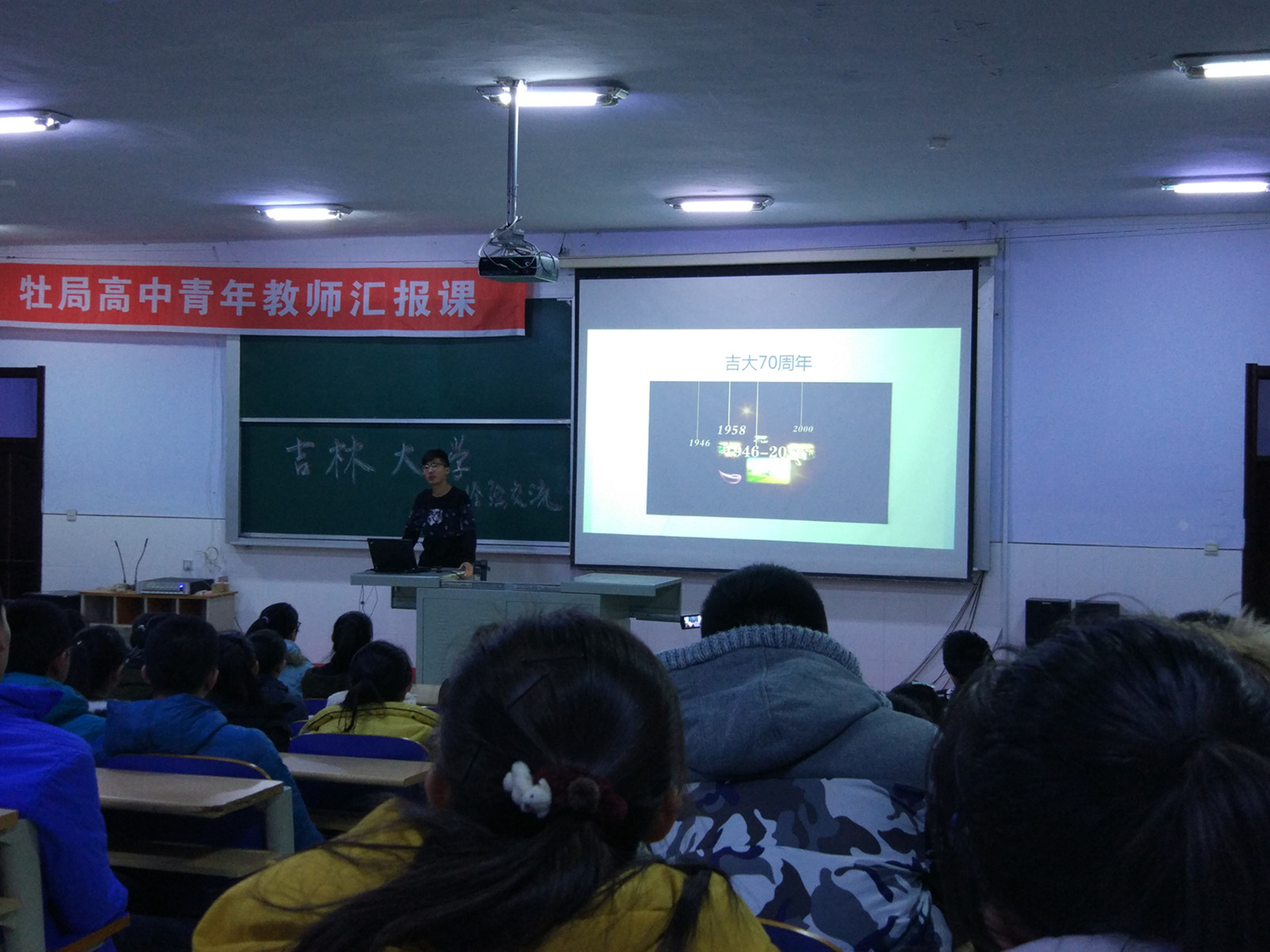 满怀着期待与热情时,同学们播放了给高三学生的加油视频,并在“白山迎旭日,黑水泛金光”的XDXX
