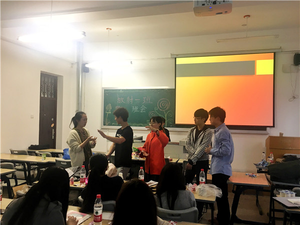 2015级放射医学一班在新民校区第一教学楼111教室组织召开了以“放松,心连心”为主题的心理班会活动。