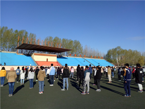 2016级的120余名俊男、靓女已经在体育场集合完毕、开始了舞蹈。早在4月中旬,为了迎接5月中旬举行的XDXX