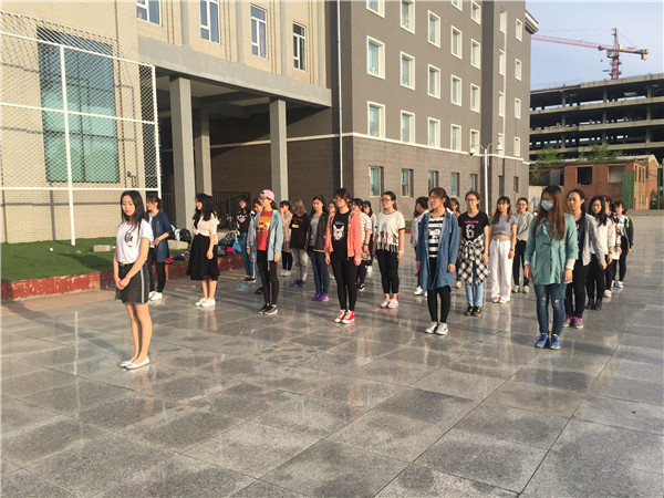 方队训练于5月17日晚6点在新民校区体育场准时进行。XDXX