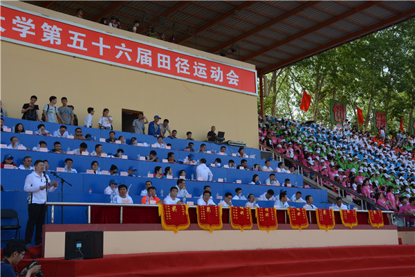 举行了第56届田径运动会,两天时间里,运动场上进行了一场场激烈的竞赛。5月19日下午2时30分,运动会闭幕式在中心校区体育场如期举行。