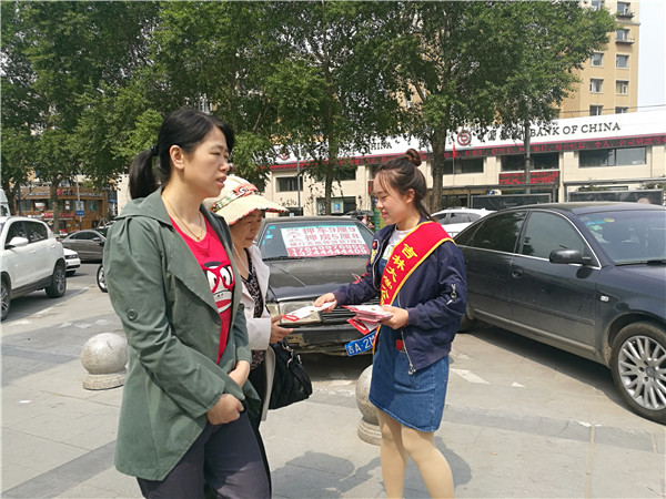 5月28日,天气晴朗,是室外宣传的好日子。正值周末,上午九点半,红旗街万达广场附近已经车水马龙。同学们迅速投入到工作中,在献血屋周围积极开展无偿献血宣传活动。斜挂在身上的红色条幅写着“XDXX