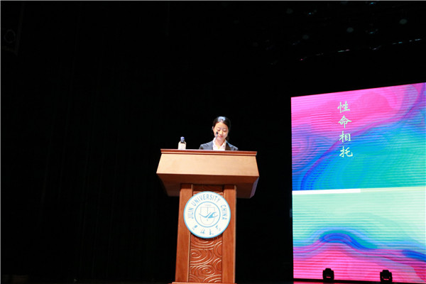 33届团委副主席由婷婷,作为学院暑假社会实践的代表,带大家重温了假期在白求恩的学校收获的精神与感动,获得了老师与同学们的热情响应与肯定。