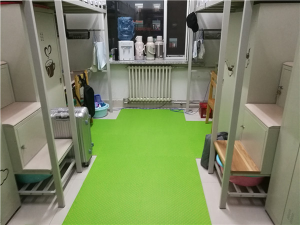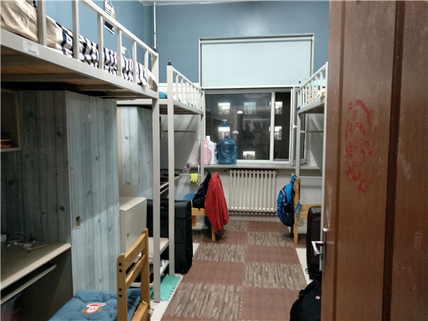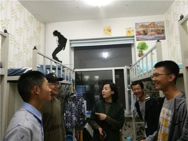 2017级学生辅导员郭倩君在学生会生活部部员的陪同下,对中心校区的北苑一公寓男生寝室以及文苑四公寓女生寝室进行首次卫生检查。