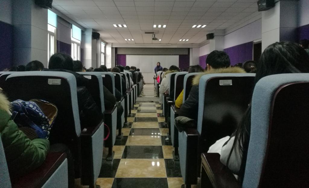三楼学术报告厅召开2014级考风考纪教育年级大会,2014级全体学生出席了此次会议。