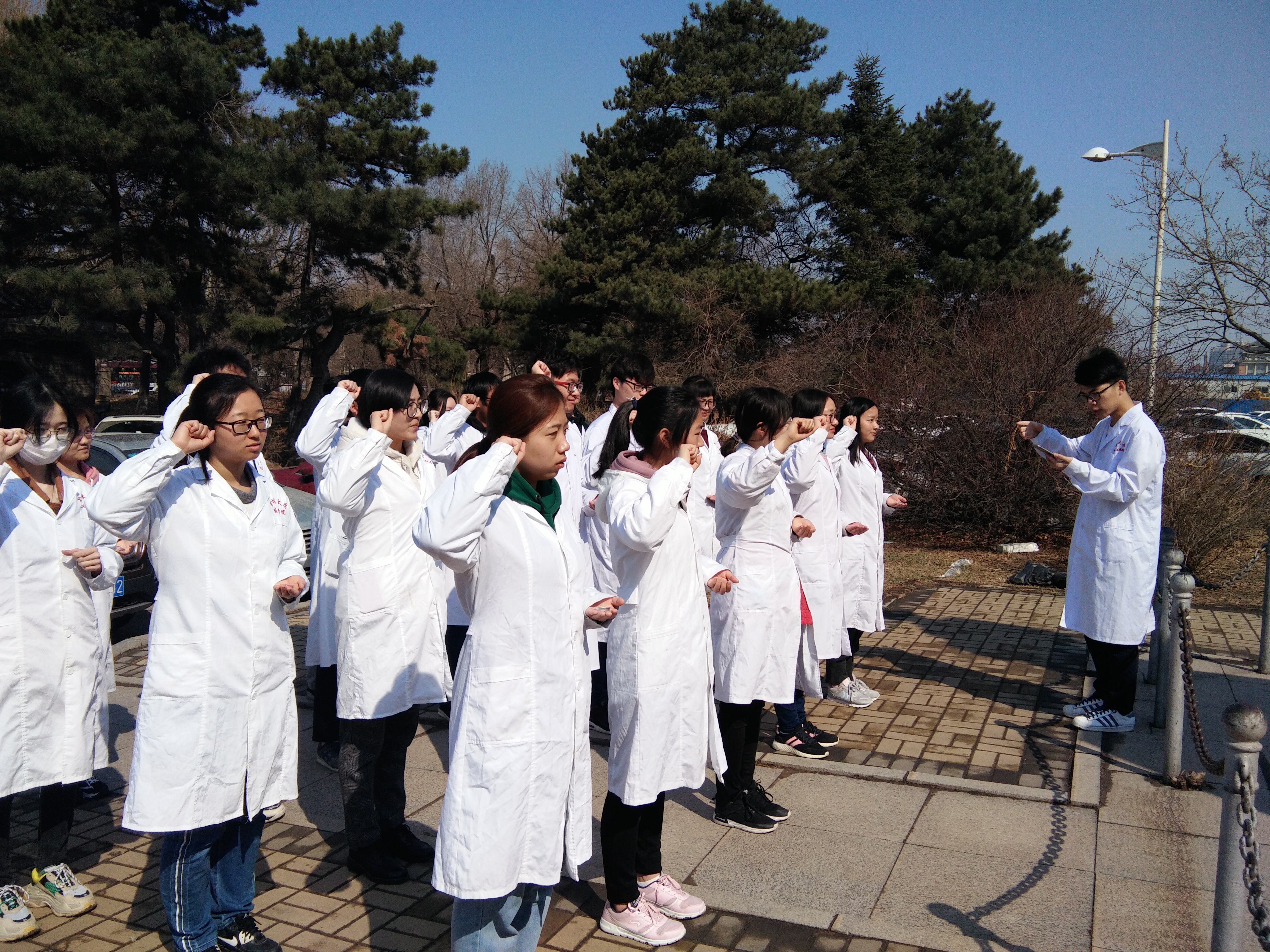 学生红十字协会于新民校区基础医学楼前广场白求恩雕像前开展红烛宣誓活动。