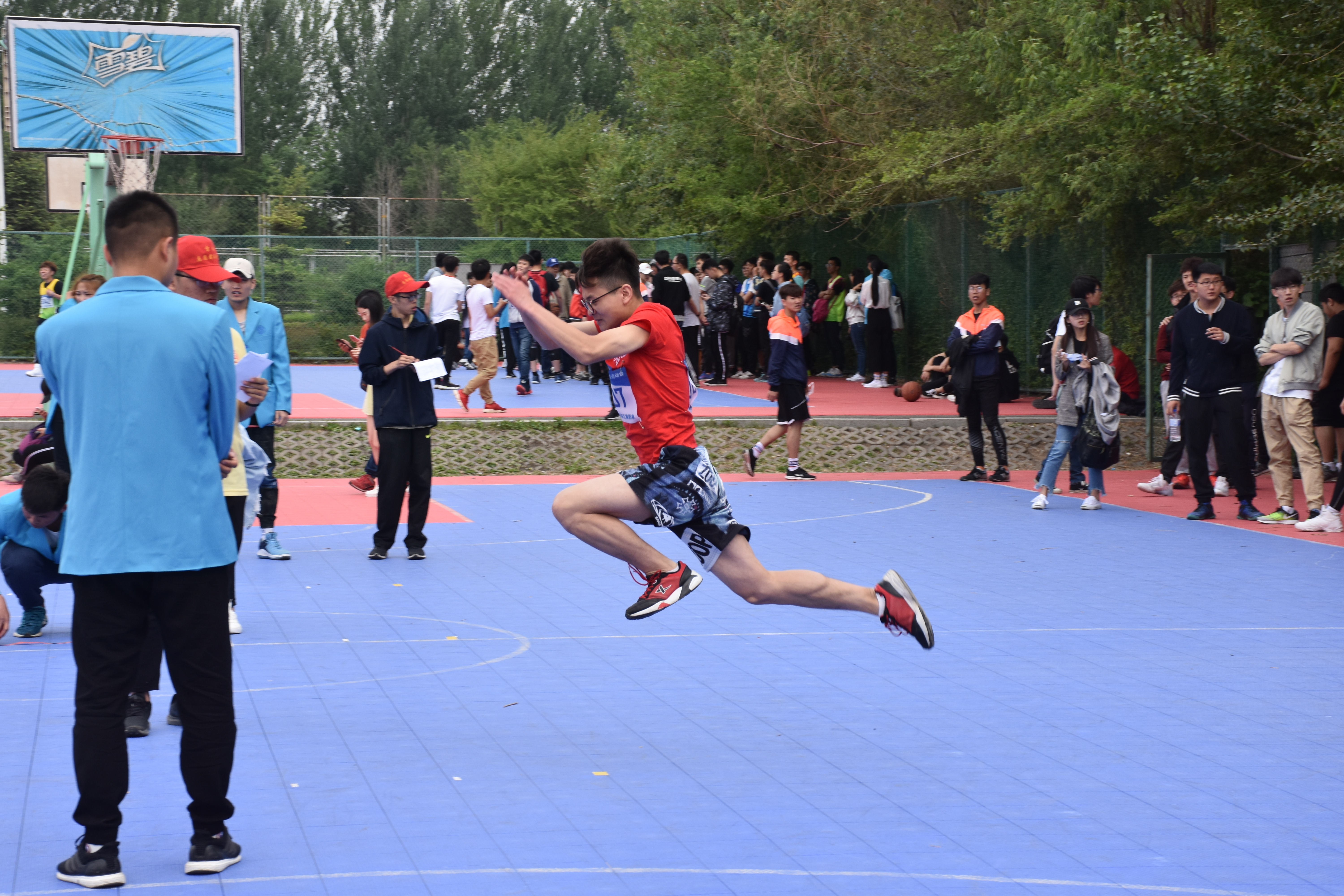 第57届田径运动会在中心校区体育场隆重召开。5月24日上午8时30分,男子立定三级跳决赛在西侧篮球场举行,XDXX