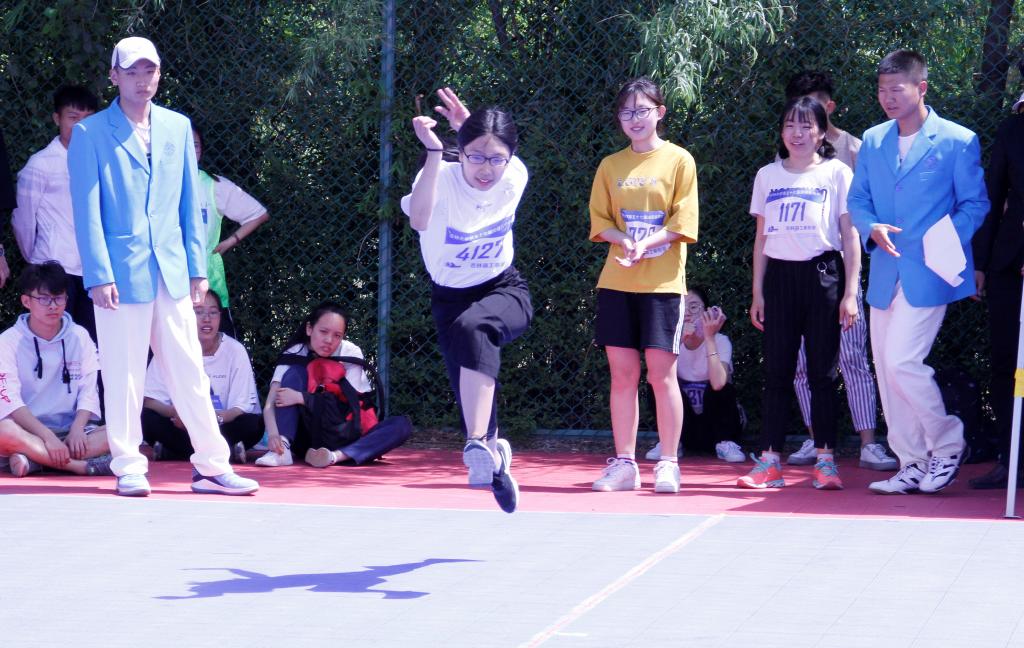第五十七届运动会于中心校区举行。5月25日上午八点半,女子学生组三级跳比赛于中心校区西侧篮球场火热开赛,XDXX