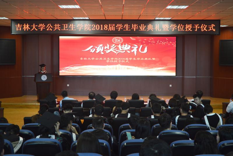 院长刘雅文,副院长于洗河分别宣读:2018届本科毕业生名单、优秀本科毕业生名单及首届全国大学生公共卫生综合技能大赛获奖名单,2018届博士、硕士毕业生名单及优秀研究生毕业生名单。随后,由院领导分别为优秀毕业生代表及首届全国大学生公共卫生综合技能大赛获奖同学颁发荣誉证书,并请李娟教授、刘娅教授、刘雅文数授、叶琳教授为毕业生颁发毕业证书并授予学位。紧接着,是师生代表的发言。研究生毕业生代表曹洪倩、本科毕业生代表石超凡同学回首求学之路,难忘珍贵点滴;展望未来征途,永怀赤心追梦,表达了对母校的感激和对老师同学的不舍。教师代表“白求恩医学部十佳兼职班主任”姚燕副教授为毕业生们送上了临别的叮咛和温暖的祝福,此去愿前程似锦,归来仍是少年。砥砺前行、勿忘初心。一词一句,点点滴滴都是师生情谊。最后,院长刘雅文教授在讲话中对圆满完成学业的毕业生们表示祝贺,并向辛勤工作、为培养学生付出智慧和汗水的老师们,向养育和支持学生成长的学生家长们致以感谢和敬意。刘院长祝福毕业生们前程似锦,一帆风顺,并对学子寄予深深的期望。