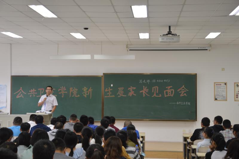 在导助们的指导下,新生及家长有序地坐在指定位置,静候见面会开始。下午两点半,会议准时开始。教室里座无虚席,看着精神饱满的新生,苏老师的心中满是期许。短暂的自我介绍过后,苏老师对预防医学、放射医学、医药信息管理三个专业的学科概况、就业前景等进行了详尽的解说,让新生及家长对所学专业有了初步的了解。紧接着,苏老师谈到大学的学习模式不同于高中阶段的问题,强调了转变学习方法,学会自学,懂得律己的重要性。同时,提醒新生不要贪图一时享受而荒废学业,鼓励新生充实自己,向优秀的学生看齐。随后,苏老师又强调了人身安全、财产安全问题,提示新生要增强防骗意识,严禁接触网络贷款。最后,苏老师表达了对同学们的期许,希望各位同学能够在XDXX