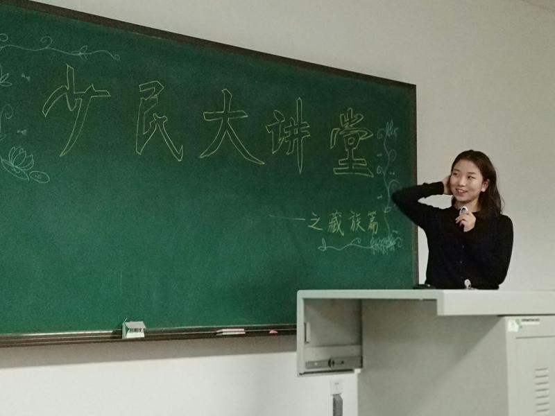 2017级两名藏族同学白玛拉姆(邓春婷)和次旺罗布担任主讲,为与会同学们详细讲解了藏族的历史文化、风景名胜以及生活习俗。
