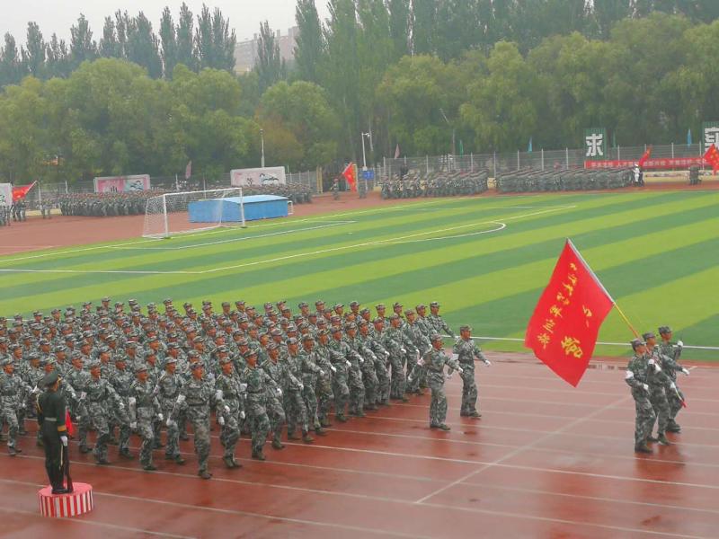 听着相继奏响的国歌与校歌,看着迎风飘扬的国旗与校旗,来自五湖四海的新生们以昂扬的姿态等待着部队首长和学校领导的检阅。伴着激昂的中国人民解放军进行曲,XDXX
