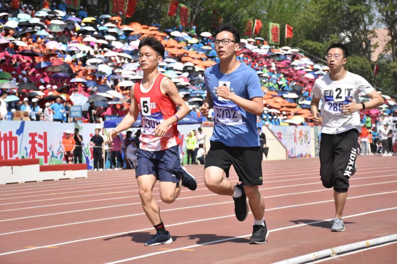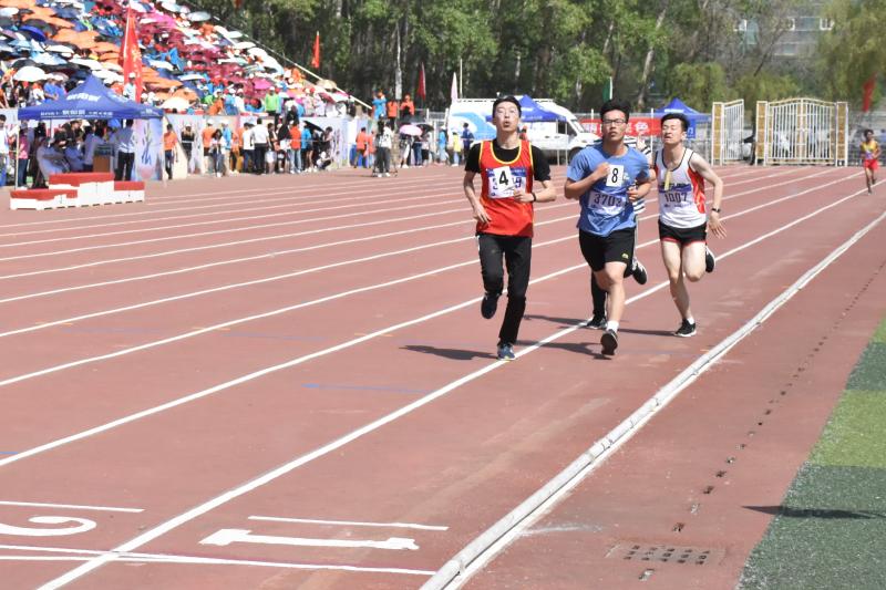 上午9时25分,逐渐火辣的阳光为体育场笼罩上一层热气。在志愿者的帮助下,运动员完成检录、进入跑道。伴随着发令枪响,运动员们如离弦之箭一般向前冲锋。比赛起始阶段,各位选手都保存实力,不贪图一时的名次。800米后,运动员们你追我赶,不分上下,不到最后冲刺的一刻也不知道谁胜谁负。周围的热气与身体散发的热气开始慢慢融为一体,参赛选手们的呼吸也开始变得急促不均,豆大的汗珠不断地穿越脸颊,在塑胶跑道上留下一个个小小的豆印。他不慌不忙,调整步调,逐渐提速。还有500米、200米……终点线越来越近;一个、两个……名次不断提前。最终,他冲过了终点线,脸上露出了欣喜的笑容。最终,XDXX