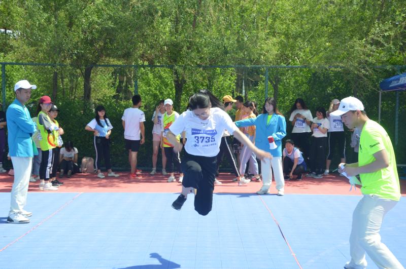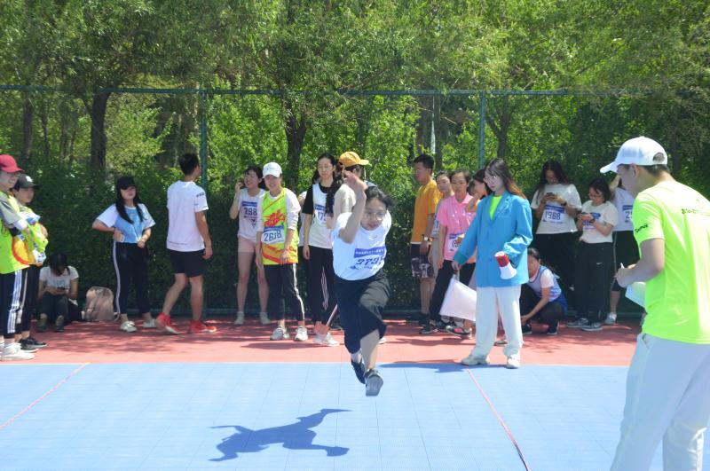 第五十八届运动会女子学生组立定三级跳远决赛在中心校区西侧篮球场举行。XDXX