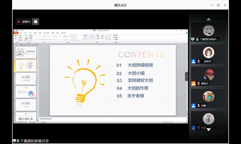 团学组织学生会创新就业指导部在7月15日于腾讯会议平台举办了大创经验分享会。分享会邀请了来自2017级有丰富大创项目经验的四位同学进行经验分享与问答交流,多位2018级、2019级学生参与。