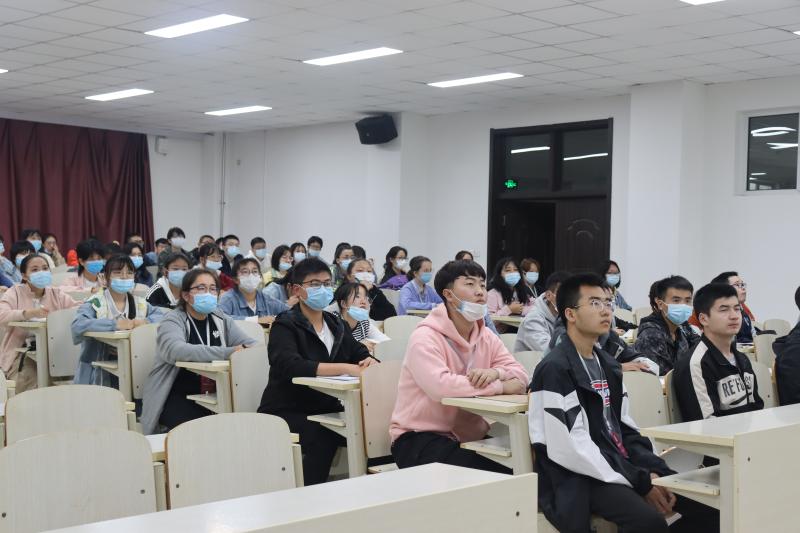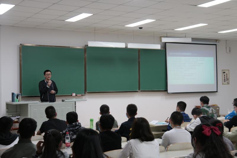 副院长寇长贵和教学办公室主任李鹏担任主讲人,2020级全体新生出席了本次会议。由于疫情防控的原因,本次讲座分别在李四光教学楼202、204教室同时举行。